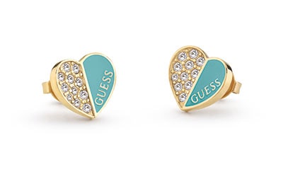 Elegantní pozlacené napichovací náušnice ve tvaru srdce s krystaly. Srdce jsou rozdělena na dvě krásné poloviny. Jednu zdobí lesklé kamínky a druhou hladkou vrstvu mint smaltu a gravírované logo Guess. Náušnice Lovely Guess srdce byly navrženy pro moderní ženu, která miluje jemné zdobení, zamilované motivy a elegantní lesk.