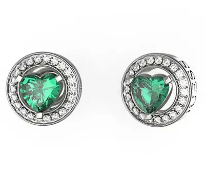Náušnice pecky se zelenými srdíčky Guess M'Ama Non M'Ama JUBE04669JWRHEMT/U oslní výjimečnou elegancí a romantickým designem. Vyrobené z hypoalergenní chirurgické oceli pokovené rhodiem, jsou jemné k pokožce a odolné. Stříbrné náušnice pecky se zelenými srdíčky z kolekce M'Ama Non M'Ama, o velikosti 10 mm, uchvátí leštěnými okraji s logem Guess, prstencem osazeným krystaly a centrálním prvkem v podobě zeleného krystalového srdce. Jsou ideální volbou pro ženy, které oceňují prestiž, jemnost a okouzlující detaily.
