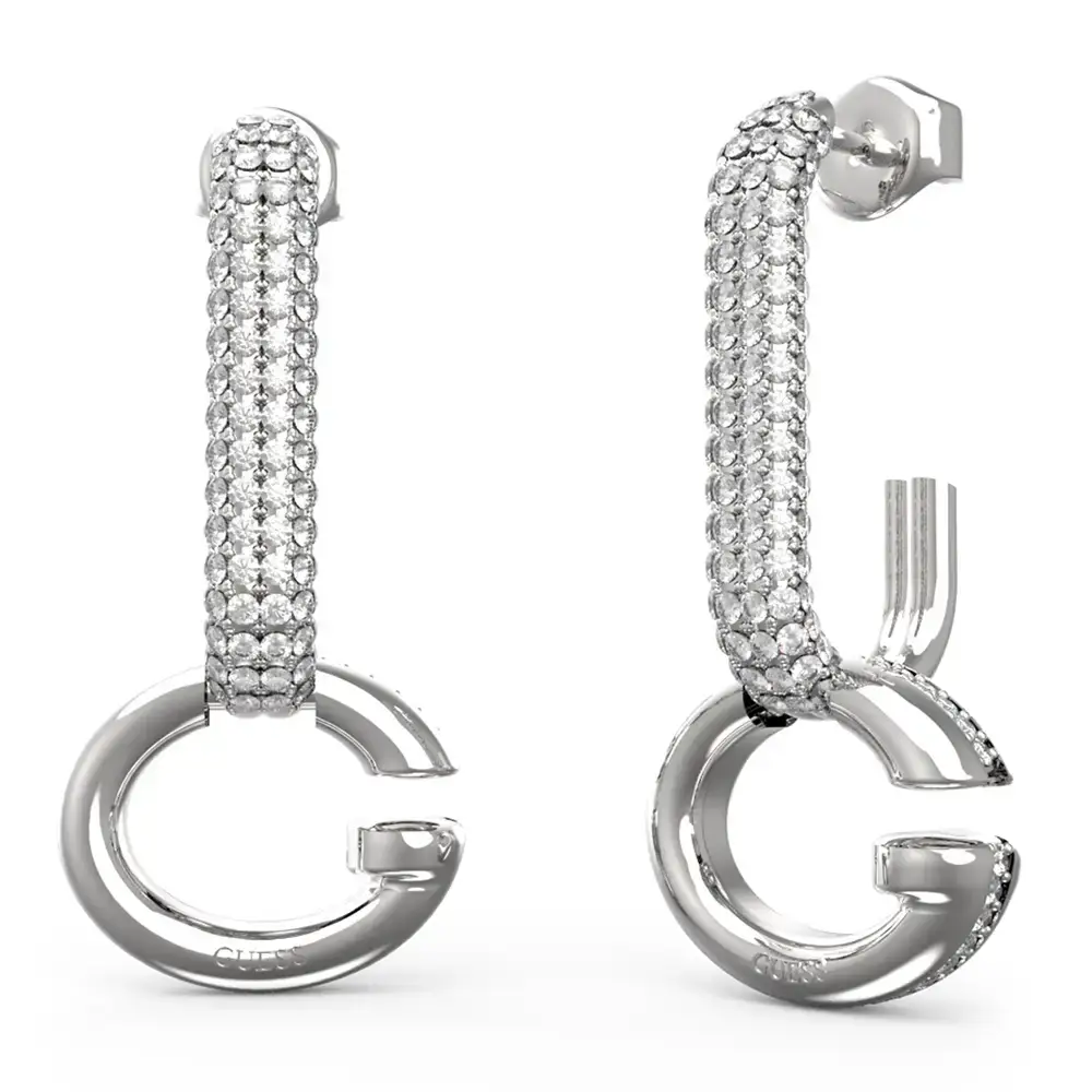 Stříbrné visací náušnice s písmenem G a zirkony Guess Oh My G JUBE04520JWRHT/U jsou ztělesněním moderního glamouru a vytříbeného stylu. Jejich poutavý design vychází z výrazné, stříbrné siluety písmene „G“ – ikonického symbolu značky Guess, který zde získává nový šperkarský rozměr.