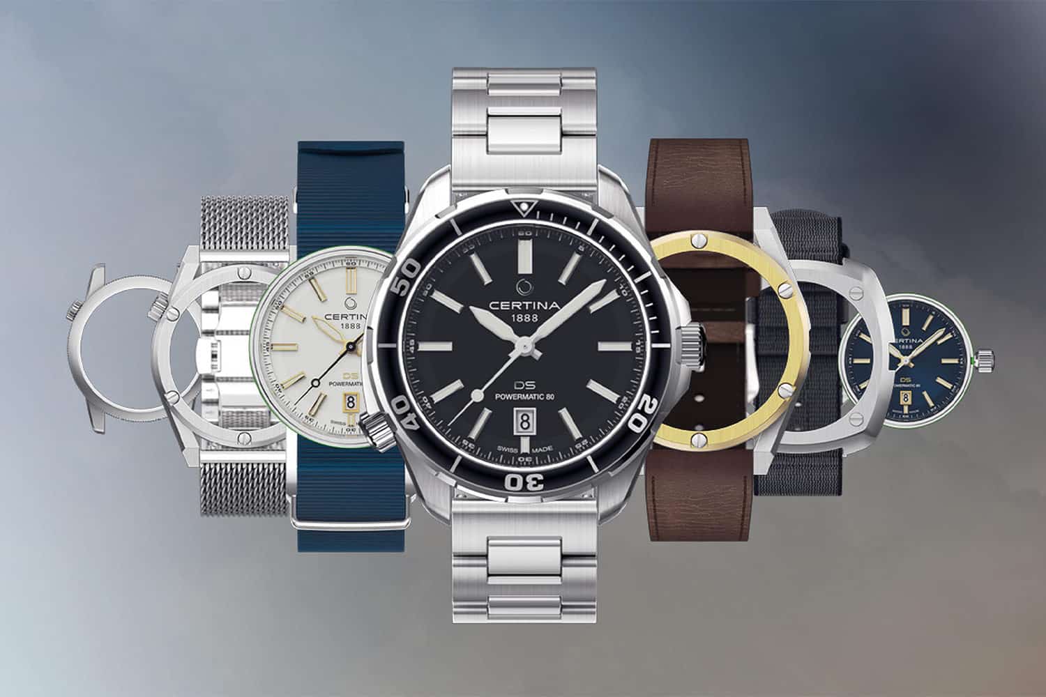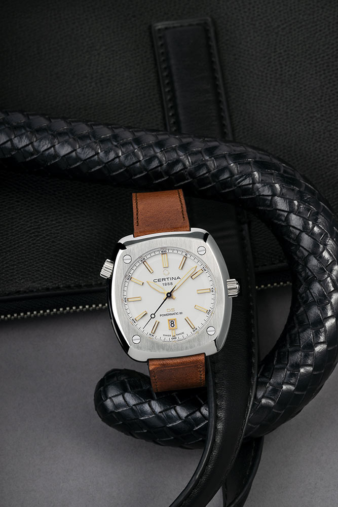 Inovativní design Horological Smartwatch značky Certina. Sestavte si své vlastní hodinky Certina pomocí ocelového pouzdra Certina DS+ Heritage C852023295 v retro stylu .
