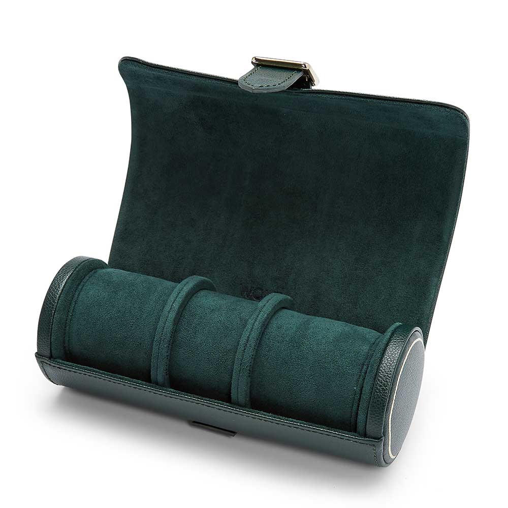Ručně vyráběné pouzdro WOLF British Racing odkazuje na zelenou barvu závodů britských závodních vozů na počátku 20. století. Vysoce kvalitní drobné detaily, jako jsou ručně ražené zlaté linky na bocích pouzdra. Prostor pro 3 hodinky oddělené kryty, aby do sebe časoměřiče při přepravě nenarážely. Stylová pozlacená přezka uzavírající pouzdro dodává na třídě. WOLF navíc tento obal vybavil diskrétní kapslí na šperky nebo manžetové knoflíčky vloženou dovnitř role. Rozměry: 20,3 x 8,3 x 8,3 cm . Pouzdro se prodává bez hodinek na fotkách.