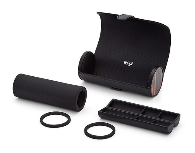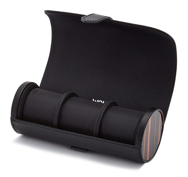 Pouzdro na 3 hodinky WOLF Roadster 477856. Pouzdro inspirované nejlepšími britskými vozy Jaguar, Aston Martin, Bristol a podobně. Měkká podšívka uvnitř chrání hodinky při cestování. Roadster také obsahuje tajnou přihrádku na šperky uvnitř role se dvěma přihrádkami pro bezpečné uložení manžetových knoflíčků, prstenů a dalších menších cenností.