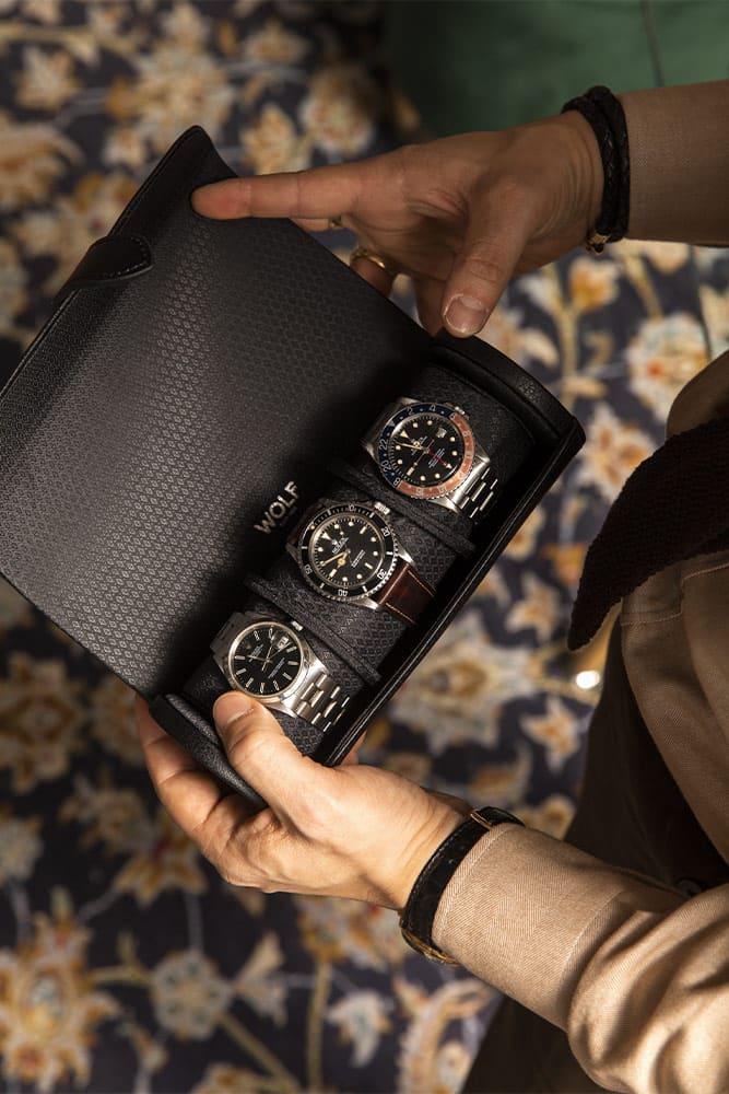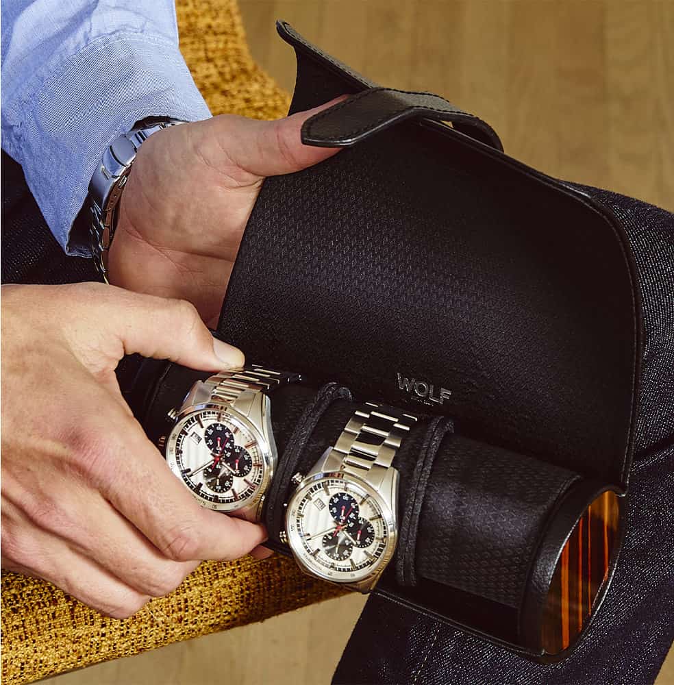 WOLF je značka prestižních doplňků pro hodinky a šperky, která svým dílům nabízí solidní a estetické provedení. Každé pouzdro je navrženo osobitým a promyšleným způsobem tak, aby jeho použití neslo pragmatické hodnoty, ale také smysl pro nejvyšší estetiku.