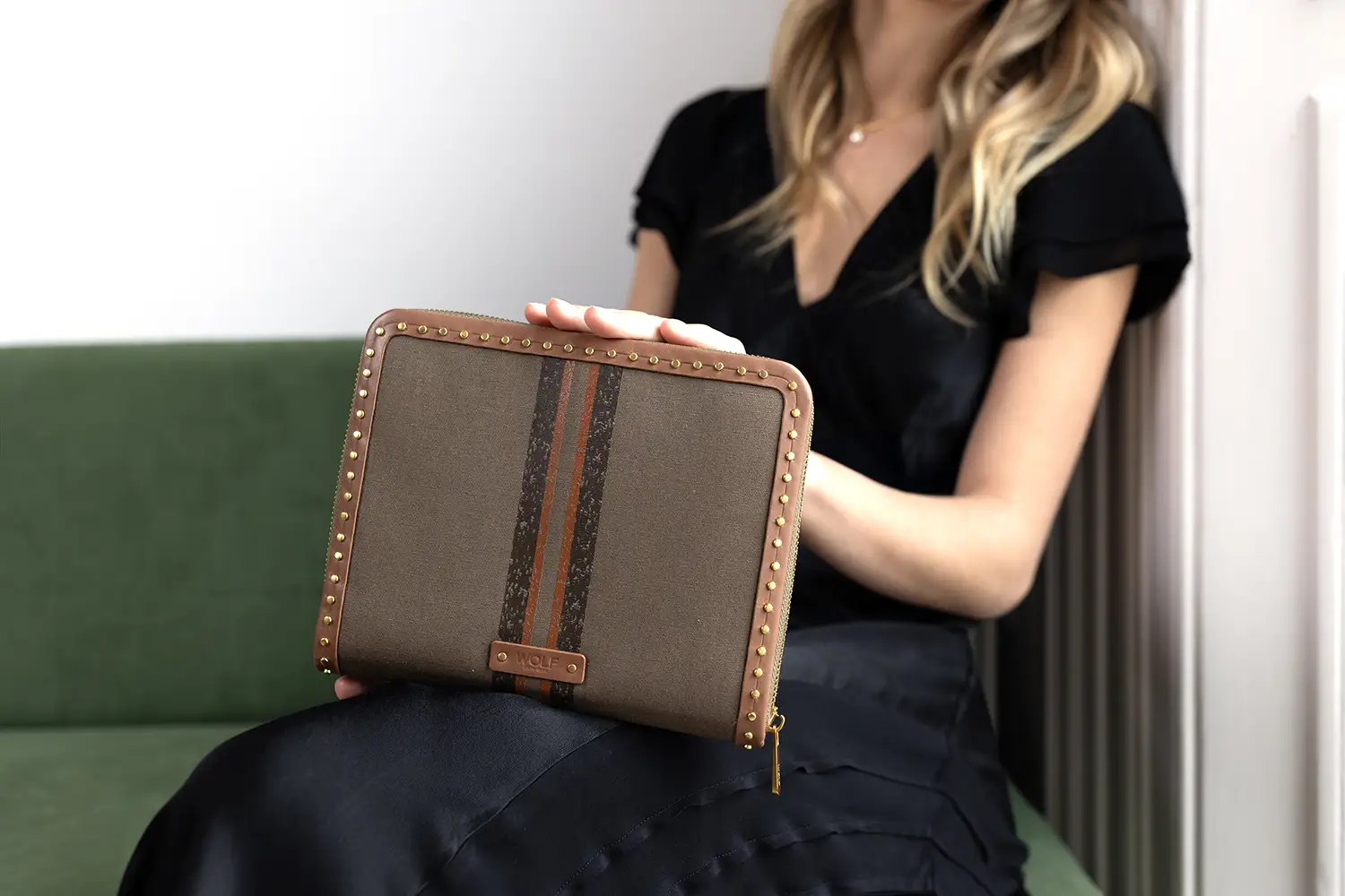 WOLF Ida v barvě khaki je dokonalou kombinací funkčnosti, elegance a ekologického přístupu k designu. Ideální pro stylovou organizaci šperků na cestách i každý den.
