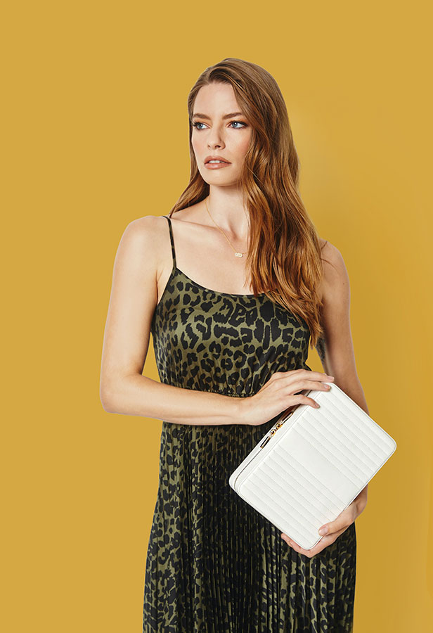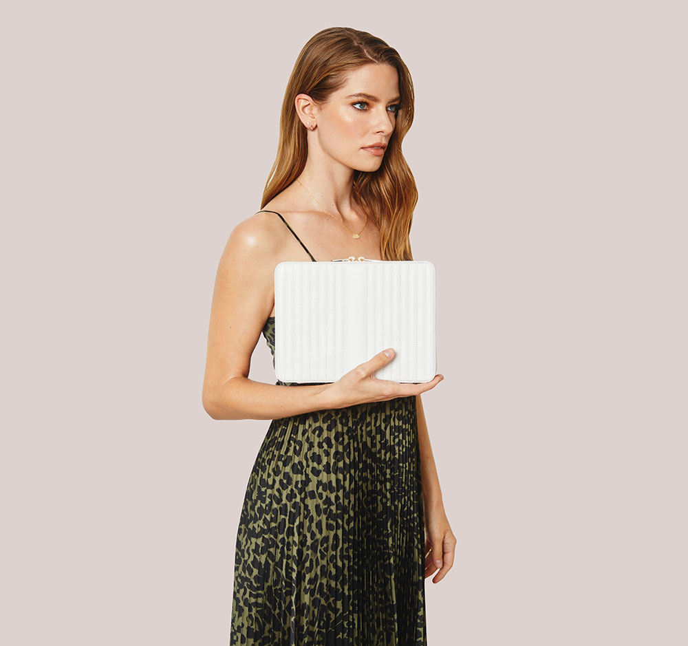 Velké elegantní pouzdro na šperky WOLF 766153 v bílé barvě je sofistikovanou klasikou svého žánru. Čisté linie a vyvážené množství detailů. Kožené pouzdro s přihrádkami na šperky z kolekce Maria je ideální pro cestovatele, kteří milují návštěvu nových měst a poznávání nových lidí. WOLF Maria je první takto bohatá kolekce zabalená do ručně vyráběné hladké kůže v barevných odstínech a zdobená úžasnými zlatými akcenty. Vezměte si své exkluzivní pouzdro kamkoli a uložte své šperky na správné místo a vytvořte si jedinečný cestovní styl. Vytvořte jej spojením podnikání, volného času a všeho mezi tím.