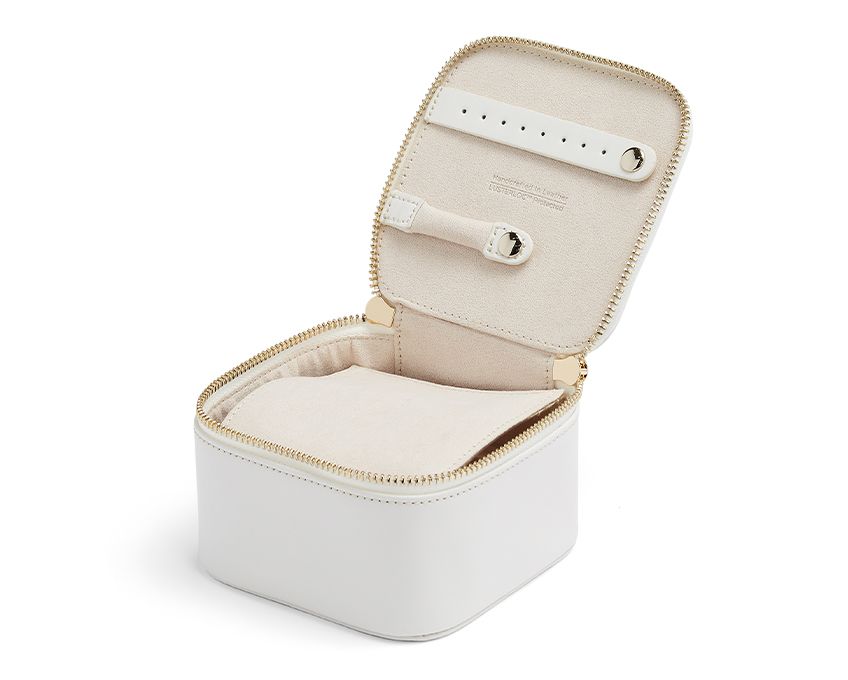 Cestovní pouzdro na šperky WOLF Maria Zip Cube 766553 v bílé barvě je sofistikovanou klasikou svého žánru. Čisté linie, tvar kostky / kostky a dokonale vyvážené množství detailů. Kožené pouzdro s přihrádkami na šperky z kolekce Maria je skvělou volbou pro cestovatele, kteří milují návštěvy nových měst a poznávání nových lidí. WOLF Maria je první takto bohatá kolekce zabalená do ručně vyrobené hladké kůže v barevných odstínech a zdobená úchvatnými zlatými akcenty. Vezměte si své exkluzivní pouzdro kamkoli a uložte své šperky na správné místo a vytvořte si jedinečný cestovní styl. Vytvořte jej spojením podnikání, volného času a všeho mezi tím. Model se zapíná na zip.