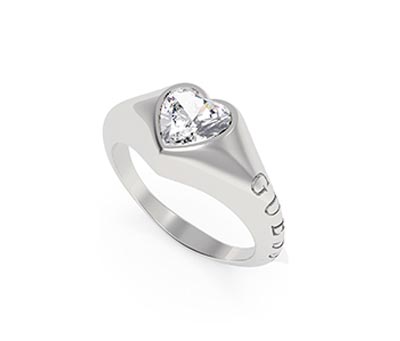 Dámský stříbrný prsten s vyrytým logem GUESS a křišťálovým srdcem Swarovski®. Šperky pocházejí od známé americké firmy Guess z kolekce From Guess With Love. Byl vytvořen pro moderní a citlivou ženu, která má ráda doplňky třpytící se čistou září s milostným podtextem.