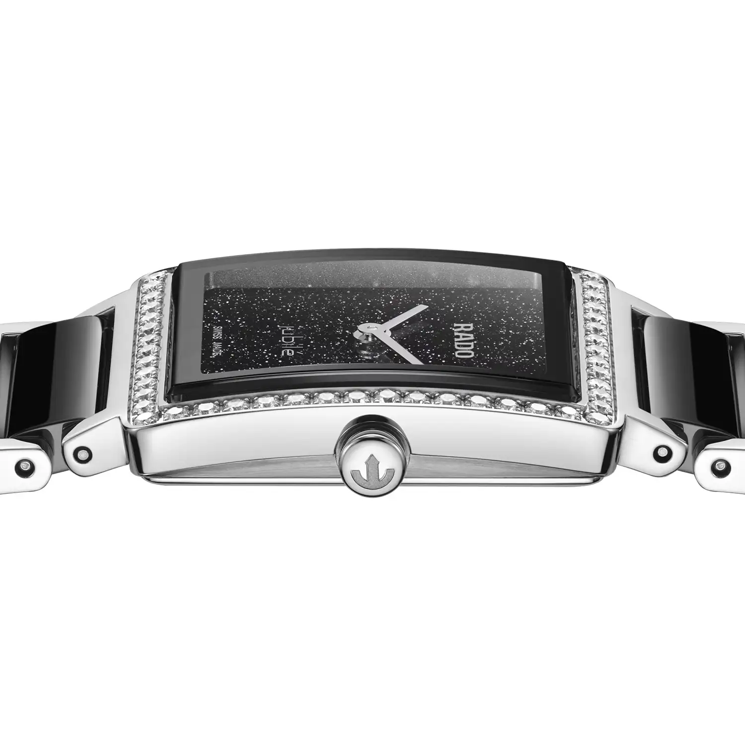 Dámské hodinky s diamanty Rado Integral Diamonds Lady R20252702 jsou nabídkou pro náročné ženy, které hledají subtilní eleganci uzavřenou v dokonale propracované formě. Tento výjimečný model se nesnaží dominovat stylizaci – spíše ji doplňuje a stává se přirozenou součástí každodenního luxusu. Štíhlé pouzdro o průměru 23 mm bylo navrženo s ohledem na jemné zápěstí a potřebu komfortu a celek se dokonale začleňuje do rytmu moderního života, kde šperk a hodinky stále častěji tvoří jeden soudržný celek.