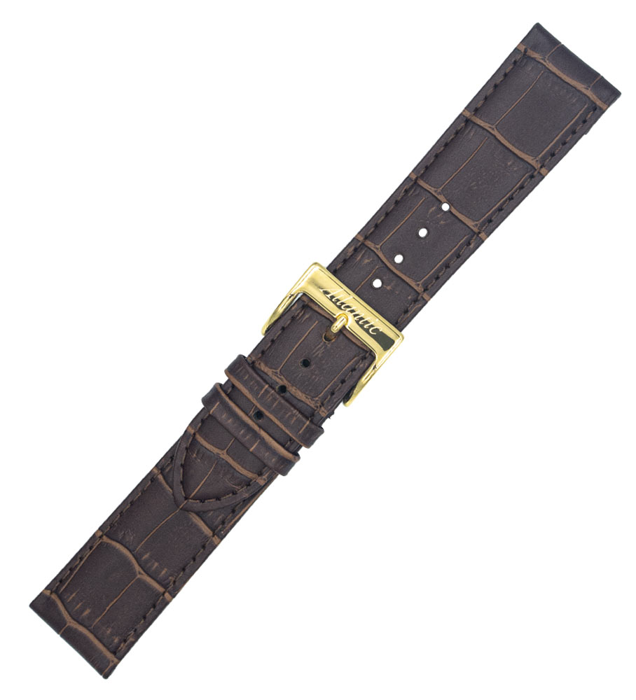 Originální řemínek na hodinky Atlantic. Vyrobeno z hnědé kůže se vzorem aligátora. Šířka 22 mm v místě upevnění a 20 mm u přezky. Spona zlaté barvy s logem Atlantic. Elegantní kožený řemínek pro pánské hodinky Atlantic.