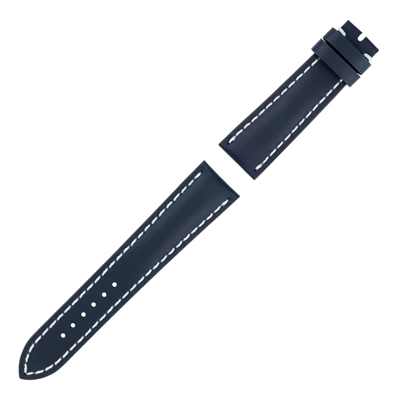 Řemínek Breitling 486X je originální servisní díl určený pro dámské hodinky této prestižní značky. Vyrobený je z vysoce kvalitní přírodní kůže v námořnické modři (Navy) s elegantním bílým prošitím, které zvýrazňuje kontrast a podtrhuje klasický styl. Řemínek je prodáván bez přezky, což umožňuje využít originální zapínání Breitling.