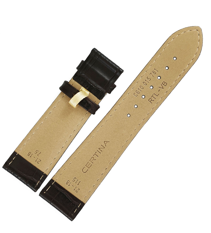 Originální 21mm široký pásek C610015781 pro hodinky Certina. Vyrobeno z přírodní kůže s elegantním vzorem aligátora, který dokonale ladí s klasickými hodinkami Certina. Řemínek je věnován originální motýlkové sponě, která je dostupná ve stříbrném, černém, růžovém a žlutém zlatě. Sponu lze zakoupit samostatně výběrem z odpovídajících produktů.