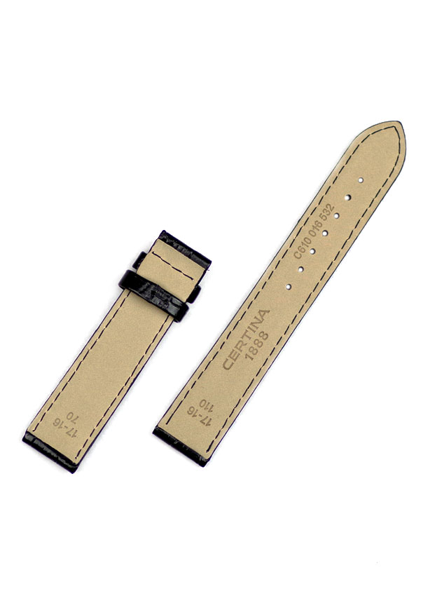 Elegantní opasek Certina C610016532 z přírodní kůže v černé barvě se vzorem aligátora. Věnováno dámským hodinkám Certina DS First se servisními čísly C014217 a C014235 , které se nachází na zadní straně pouzdra, spodní části hodinek. Opasek se prodává samostatně, bez zapínání, pokud si jej chcete zakoupit, vyberte prosím níže uvedenou možnost.