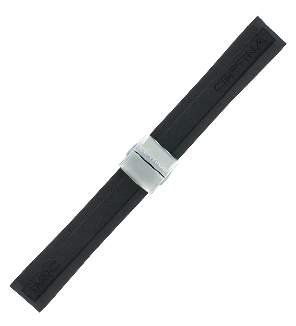 Originální, voděodolný řemínek pro pánské hodinky Certina DS Podium Big Chrono WRC z černé gumy. C603019309 je určeno pouze pro model hodinek se servisním číslem C001647 na krytu, na spodní straně hodinek. Řemínek lze zkrátit přestřižením a je opatřen ocelovou motýlkovou sponou rozepínanou na knoflíky.