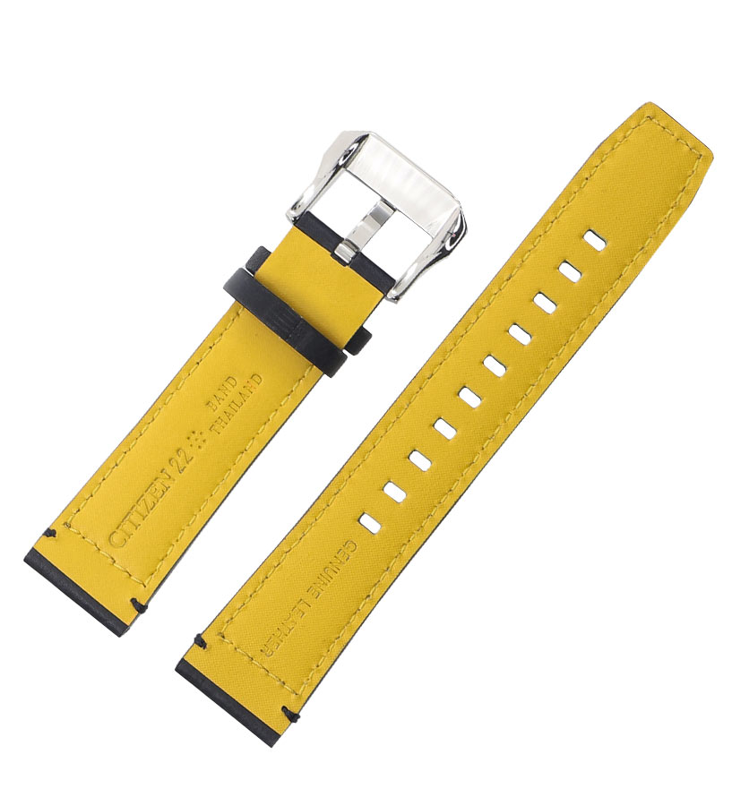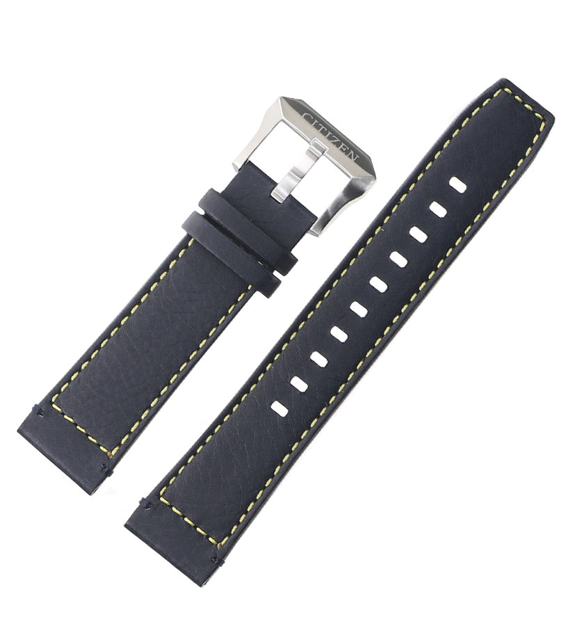 Originální řemínek Citizen 22mm pro hodinky Citizen Blue Angels. Vyrobeno z přírodní kůže v modré barvě se žlutým prošíváním a spodkem. Hodí se pro většinu hodinek Citizen s 22mm řemínkem.