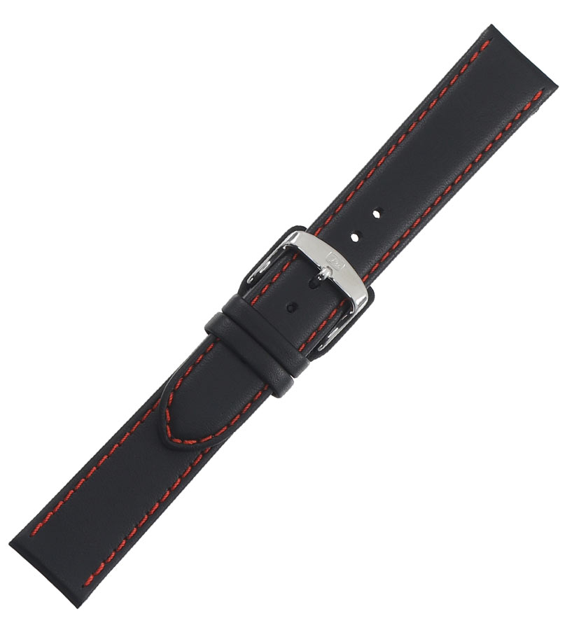 Di-Modell Denver v černé verzi s červeným šitím je řemínek určený pro ty, kteří chtějí svým hodinkám dodat výrazný, dynamický styl. Vyrobený z kvalitní hovězí kůže, ručně šitý v Německu, kombinuje solidní provedení s moderním sportovním vzhledem. Kontrastní červené švy podtrhují design a perfektně ladí s chronografy a hodinkami inspirovanými letectvím.
