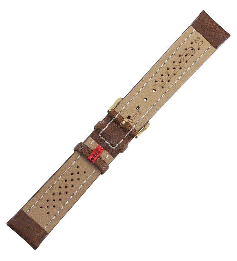 Řemínek k hodinkám Di-Modell Montana z měkké hnědé kůže se sportovním střihem. Speciální AERO podšívka vybavená otvory, které zajišťují proudění vzduchu, takže se ruka nepotí a poskytuje bezkonkurenční pohodlí při nošení. Důmyslně zpracovaný řemínek Montana je voděodolný, takže se při vodních sportech nemusíte vzdávat svých oblíbených pánských, dámských hodinek nebo hodinek s chronografem. řemínek má také charakteristickou červenou ochranu poutka na opasek.