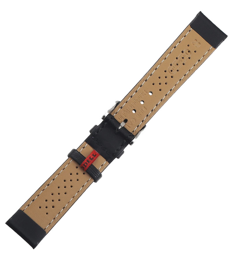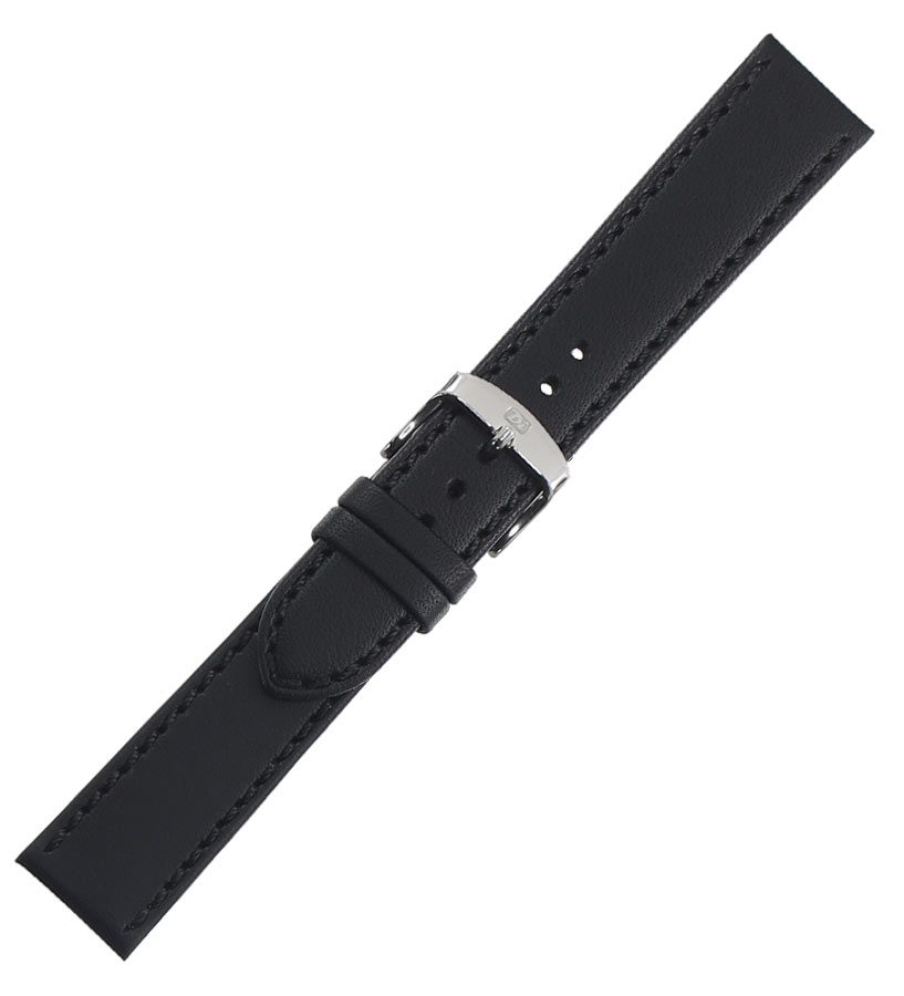 Ručně šitý řemínek k hodinkám, Di-Modell Oregon černý. Rostlinně činěná sedlářská kůže s AERO podšívkou se speciálními otvory pro usnadnění proudění vzduchu, díky kterým se ruka nepotí a zajišťuje komfort nošení. Oregon je luxusní doplněk k exkluzivním pánským hodinkám. Hladká textura opasku s čirým švem a ochranou zabraňující ztrátě poutka na opasek. Silný, sportovní a přitom luxusní řemínek k hodinkám.