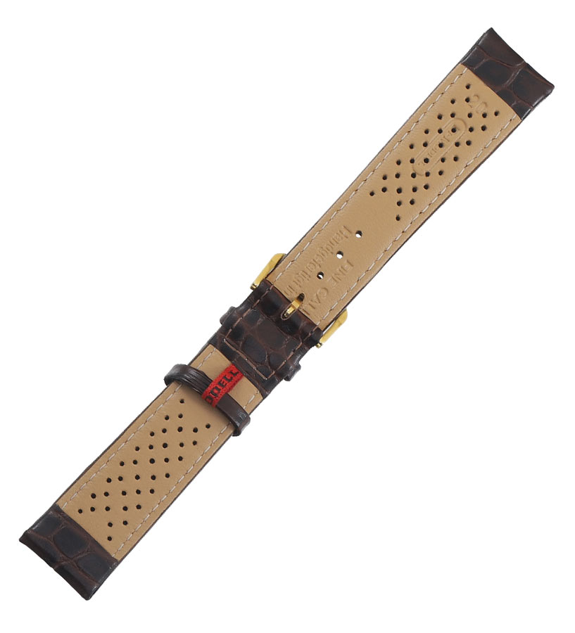 Hnědý kožený řemínek k hodinkám Di-Modell Orlando je vyroben z nejjemnější teletiny z kolekce NOBLEHOUSE Manufaktur . Krásná imitace aligátořího zrna na kvalitní telecí kůži a zručné řemeslné zpracování mu dodávají osobitý charakter. K dispozici v mnoha šířkách, je proto stylovým doplňkem mnoha hodinek. Vzor aligátora se hodí k luxusním dámským i pánským hodinkám. I elegantní chronografy se s tímto řemínkem stanou cennějšími. AERO podšívka se speciálním designem umožňuje proudění vzduchu mezi rukou a popruhem a zaručuje nejvyšší úroveň pohodlí.