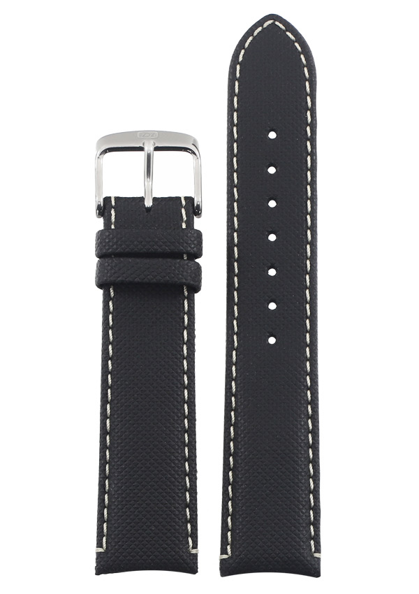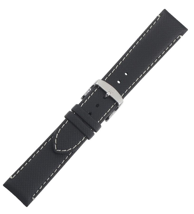 Řemínek sportovních hodinek Di-Modell Silverstone černý. Ručně šité v Německu za použití nejkvalitnější přírodní kůže a měkké a pohodlné gumy na spodní straně. Silverstone je zcela vodotěsný, odolný proti plavání a karbonový povrch a bílé prošívání z něj dělají perfektní kombinaci pro pánské sportovní hodinky. Ze spodní strany je přezka dodatečně prošita a dodatečně zpevňuje celou konstrukci. Poznávacím znamením Di-Modell je červená ochrana poutka na opasek, která drží na jednom místě a usnadňuje tak nasazování hodinek na zápěstí.