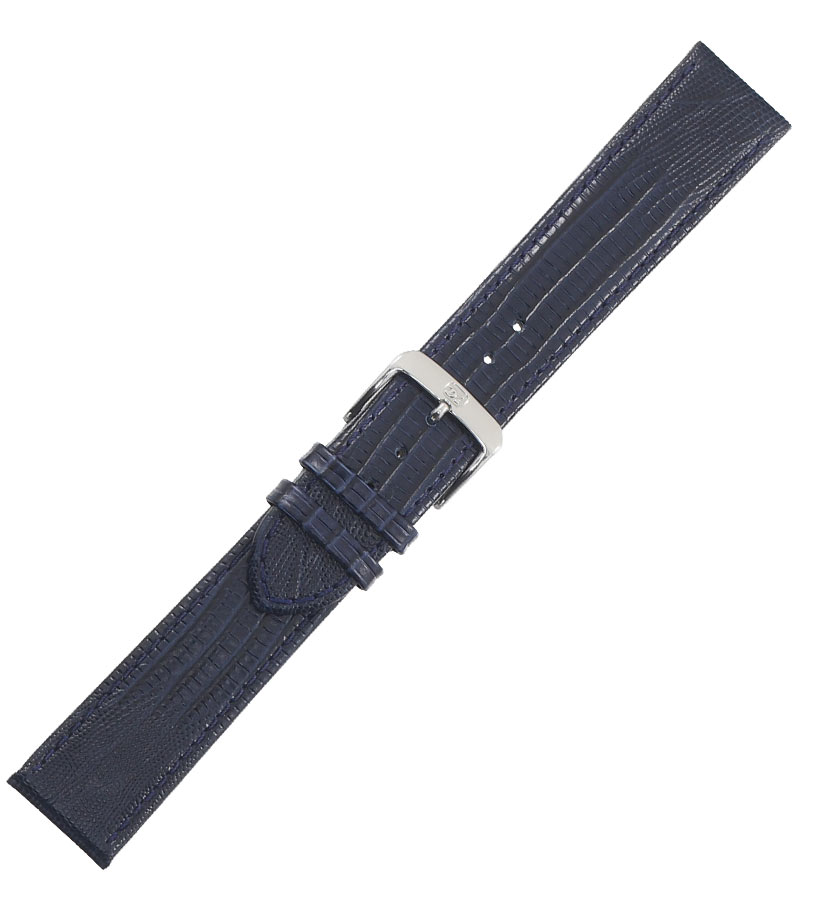 Přírodní telecí kůže s embosováním lizard dodává jemný lesk a hloubku odstínu navy. Štíhlý profil se pohodlně přizpůsobí zápěstí a rovné šití i hladké hrany svědčí o precizním zpracování. Modrý tón výborně ladí s ciferníky v námořnické modři, šedé a stříbrné, dodávaje hodinkám svěžest bez přehnané výraznosti.