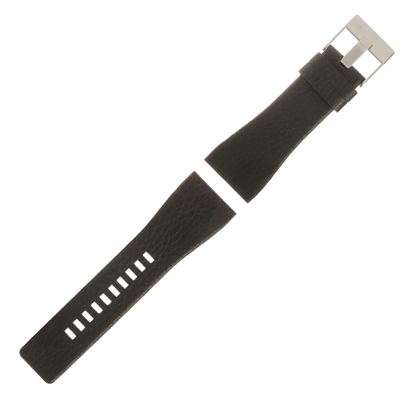 Struktura kůže je jemně zrnitá, což podtrhuje surový, industriální styl typický pro značku Diesel. Řemínek je zakončen robustní sponou z nerezové oceli, která nejen dobře vypadá, ale zajišťuje i dlouhou životnost a bezpečné používání. Díky přesnému přizpůsobení pouzdru není při montáži třeba žádných úprav a je zajištěna plná servisní kompatibilita.