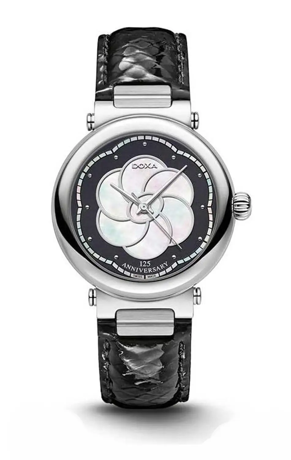 Doxa Calex 462.15 je originální řemínek určený výhradně pro hodinky ze série Doxa Calex 462.15. Vyrobený z černé, lesklé kůže, představuje elegantní a přesně přizpůsobený doplněk originálního pouzdra. Charakteristický výřez a speciální systém uchycení na stěžejky zajišťují perfektní spojení s hodinkami při zachování jejich jedinečného charakteru.