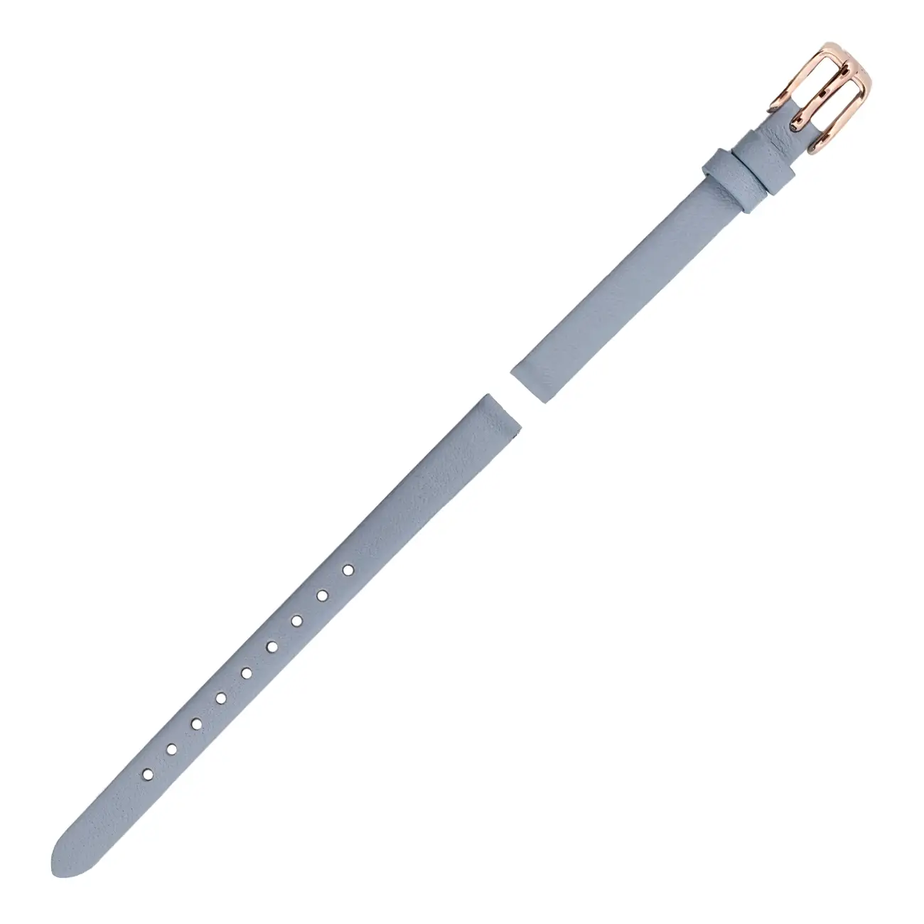 Řemínek Fossil BQ3327 je originální kožený řemínek určený pro hodinky značky Fossil, navržený především pro model s referencí BQ3327. Je vyroben z hladké kůže v jemném světle modrém odstínu (s nádechem modré) bez prošívání, což mu dodává elegantní a minimalistický vzhled. Přezka v barvě růžového zlata harmonicky doplňuje styl řemínku a podtrhuje jeho ženský charakter.