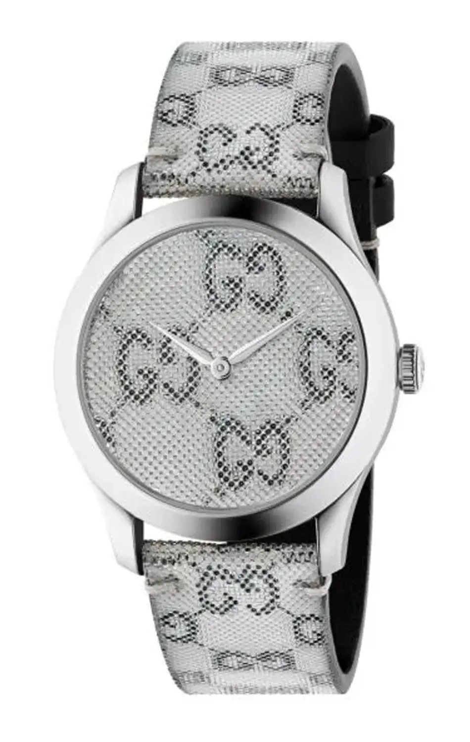 Originální řemínek Gucci YDA33771 je výjimečný doplněk navržený pro model 3D Floating GUCCI. Jeho nejvýraznějším prvkem je jedinečná struktura povrchu – vnější vrstva ze syntetického materiálu zobrazuje trojrozměrné logo Gucci, které mění svůj vzhled v závislosti na úhlu pohledu. Efekt 3D je nápadný a poutavý, dodává hodinkám moderní a luxusní charakter.
