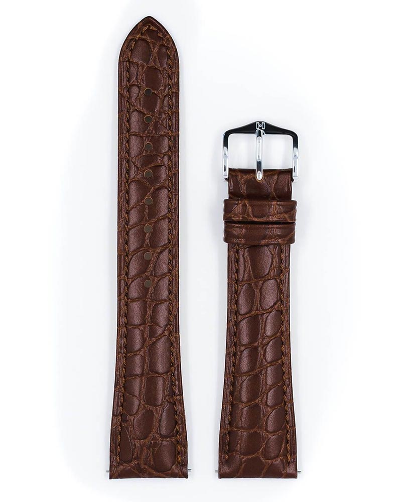 Ušlechtilý hnědý řemínek k hodinkám Hirsch Aristocrat s krokodýlím vzorem. Matný povrch s rafinovanou linií a diskrétním švem. Lehký materiál podšitý vlákny pravé kůže a elegantní klasickou přezkou. Hirsch Aristocrat se perfektně hodí k dámským a pánským klasickým hodinkám. Speciální teleskopy usnadňují sestavení řemínku hodinek bez použití hodinářských nástrojů.
