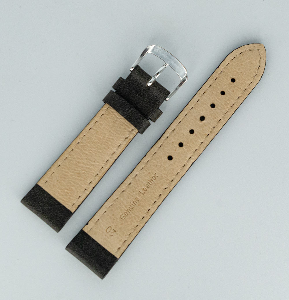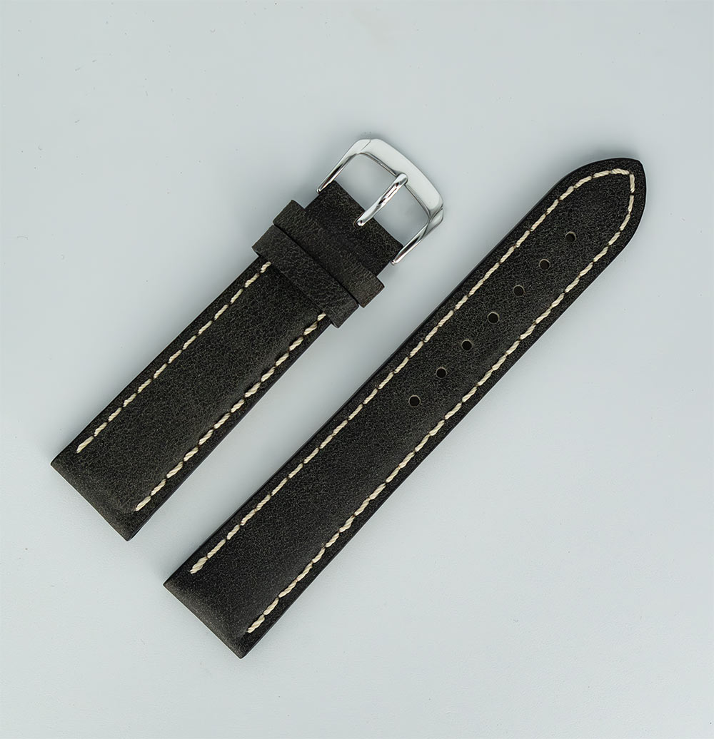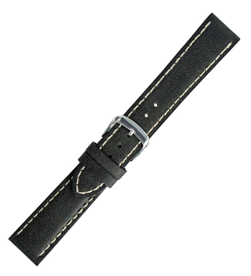 Hirsch Calfskin Stitched černo-šedý řemínek hodinek s bílou nití v retro stylu. Vyrobeno z měkké a pohodlné přírodní kůže s heterogenní strukturou, která dodává vintage styl. Univerzální a nadčasový design z tohoto modelu dělá perfektní doplněk k pánským hodinkám.