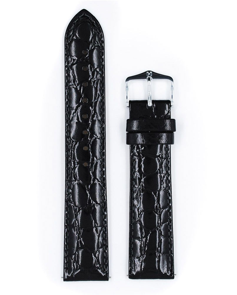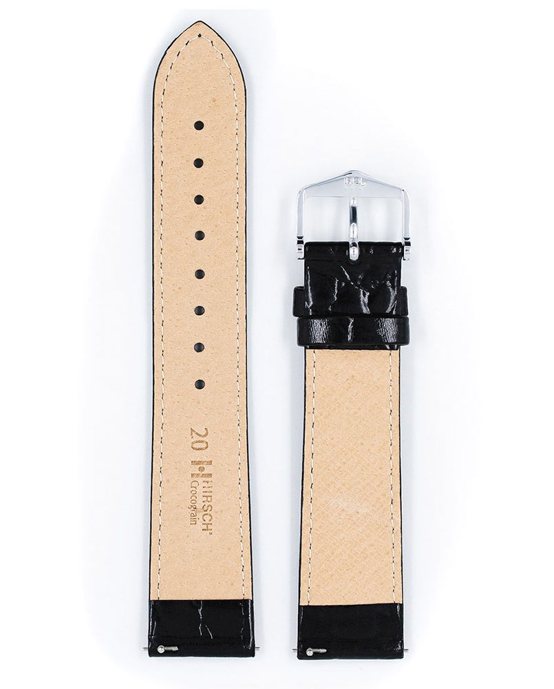 Řemínek k hodinkám Hirsch Crocograin v černé barvě - pro milovníky klasických kožených řemínků. Vysoce kvalitní lesklá přírodní kůže s dokonalou imitací struktury krokodýlí kůže. Měkké a příjemné na dotek díky vodě a potu odolné podšívke Softglove . Crocograin řemínek vytvořený pro elegantní a klasické dámské a pánské hodinky.