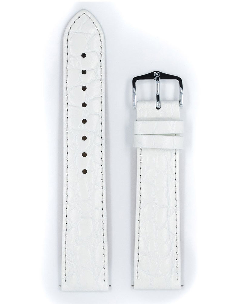 Řemínek k hodinkám Hirsch Crocograin v bílé barvě - pro milovníky klasických kožených řemínků. Vysoce kvalitní, lesklá přírodní kůže s dokonalou imitací struktury krokodýlí kůže. Měkké a příjemné na dotek díky vodě a potu odolné podšívke Softglove . Crocograin řemínek vytvořený pro elegantní a klasické dámské a pánské hodinky.