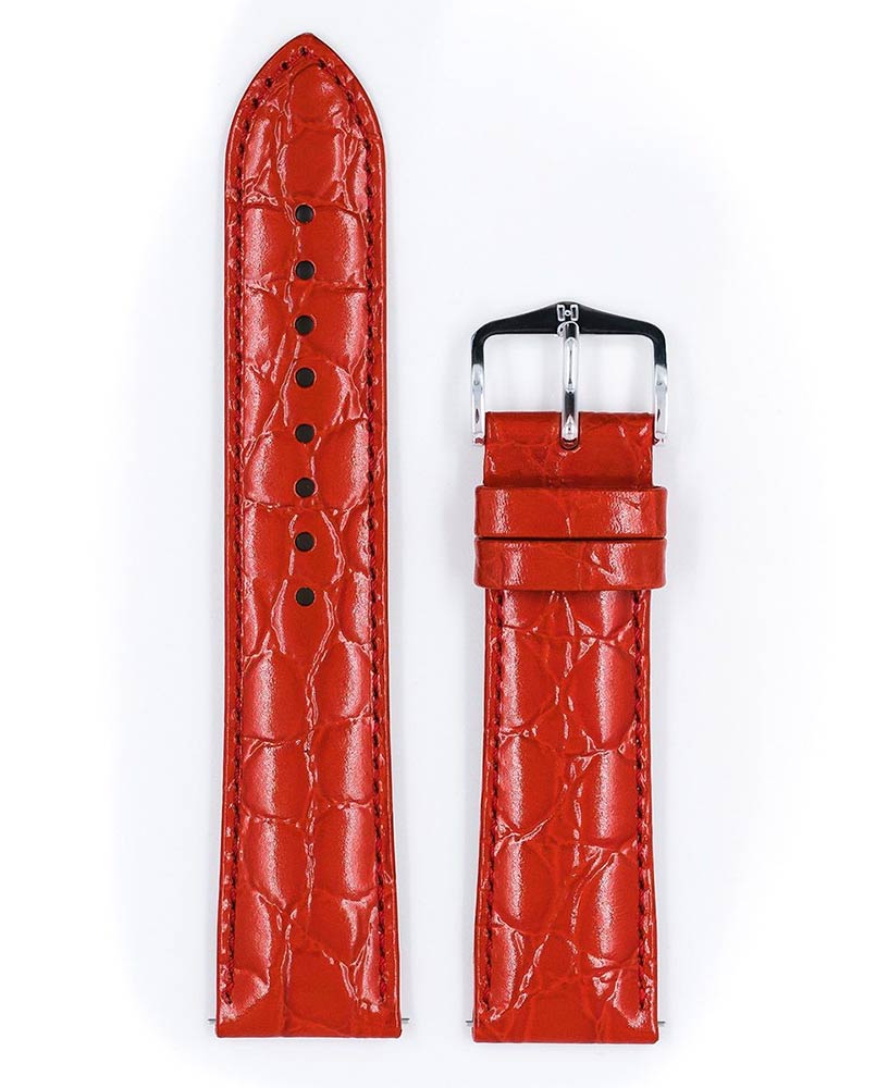 Řemínek k hodinkám Hirsch Crocograin v červené barvě - pro milovníky klasických kožených řemínků. Vysoce kvalitní lesklá přírodní kůže s dokonalou imitací struktury krokodýlí kůže. Měkké a příjemné na dotek díky vodě a potu odolné podšívke Softglove . Crocograin řemínek vytvořený pro elegantní a klasické dámské a pánské hodinky.