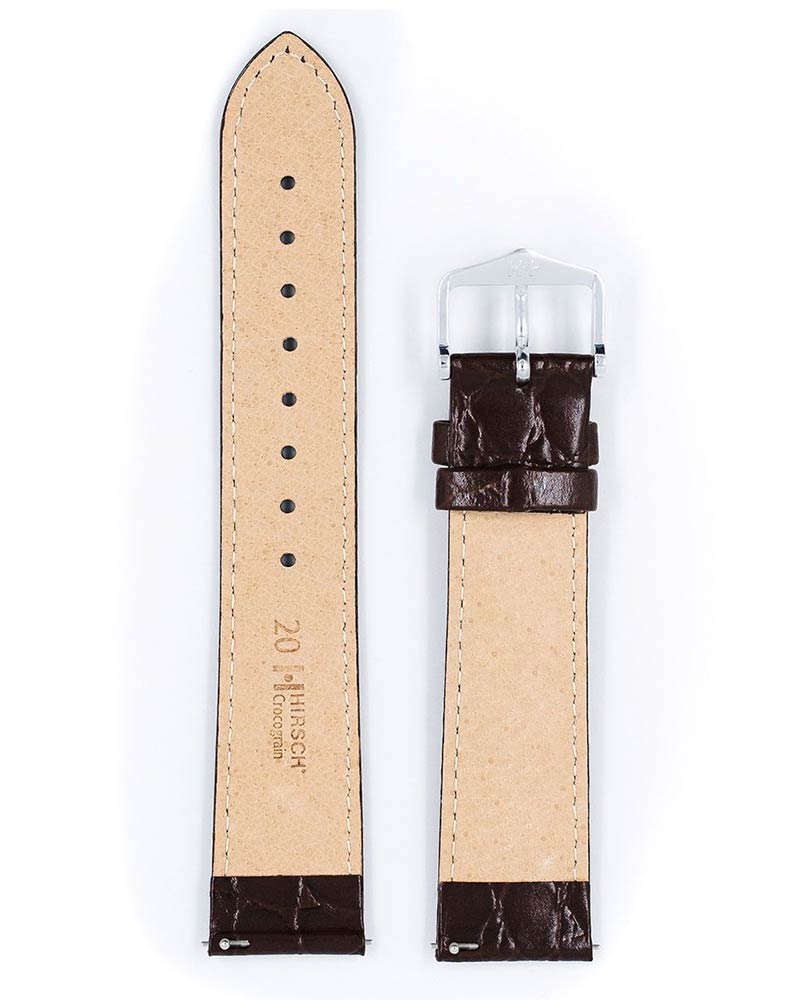 Hnědý řemínek k hodinkám Hirsch Crocograin - pro milovníky klasických kožených řemínků. Vysoce kvalitní, lesklá přírodní kůže s dokonalou imitací struktury krokodýlí kůže. Měkké a příjemné na dotek díky vodě a potu odolné podšívke Softglove . Crocograin řemínek vytvořený pro elegantní a klasické dámské a pánské hodinky.