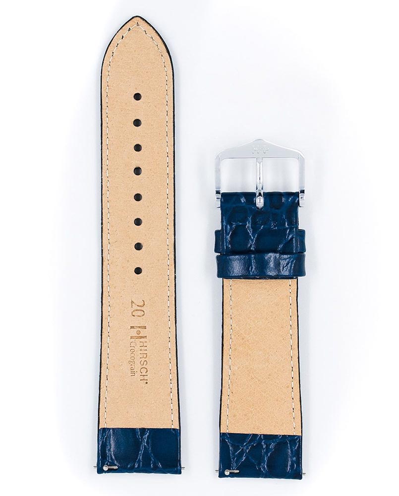 Modrý řemínek k hodinkám Hirsch Crocograin - pro milovníky klasických kožených řemínků. Vysoce kvalitní, lesklá přírodní kůže s dokonalou imitací struktury krokodýlí kůže. Měkké a příjemné na dotek díky vodě a potu odolné podšívke Softglove . Crocograin řemínek vytvořený pro elegantní a klasické dámské a pánské hodinky.