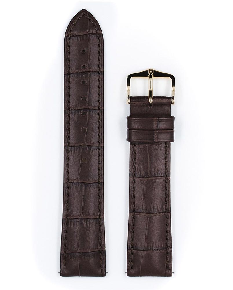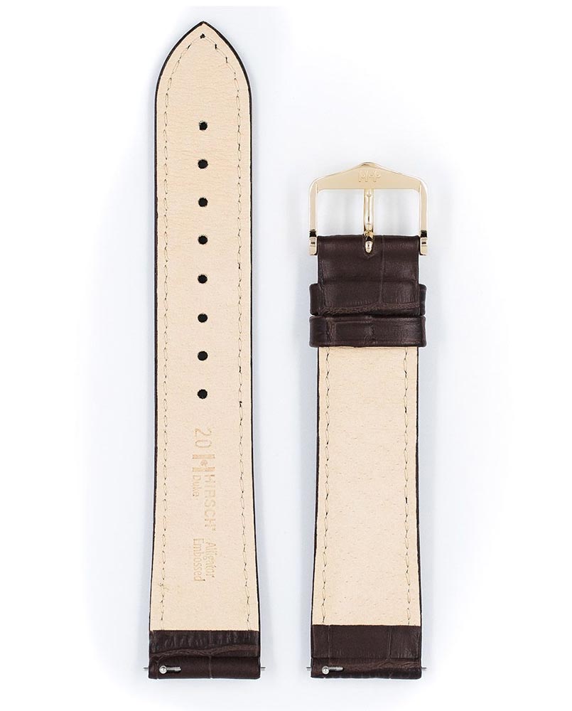 Jeden z celosvětově nejoblíbenějších řemínků na hodinky Hirsch Duke v hnědé barvě. Rakouský výrobce v průběhu staletí zdokonaluje řemeslné zpracování kůže, výsledkem je extrémně odolná přírodní kůže, která kombinuje elegantní a exkluzivní vzor aligátora s extrémní odolností. Vodě a potu odolná podšívka Hirsch Softglove zajišťuje nejvyšší komfort nošení i při vyšší zátěži. Teleskopy Hirsch Quick-Release upevněné v řemínku umožňují jeho připevnění k hodinkám bez použití nářadí. Model Duke se skvěle hodí k elegantním i sportovním hodinkám. Hnědý řemínek k hodinkám Hirsch Duke je dostupný v šířkách od 12 mm do 26 mm v různých délkách, díky čemuž se přizpůsobí každému zápěstí.