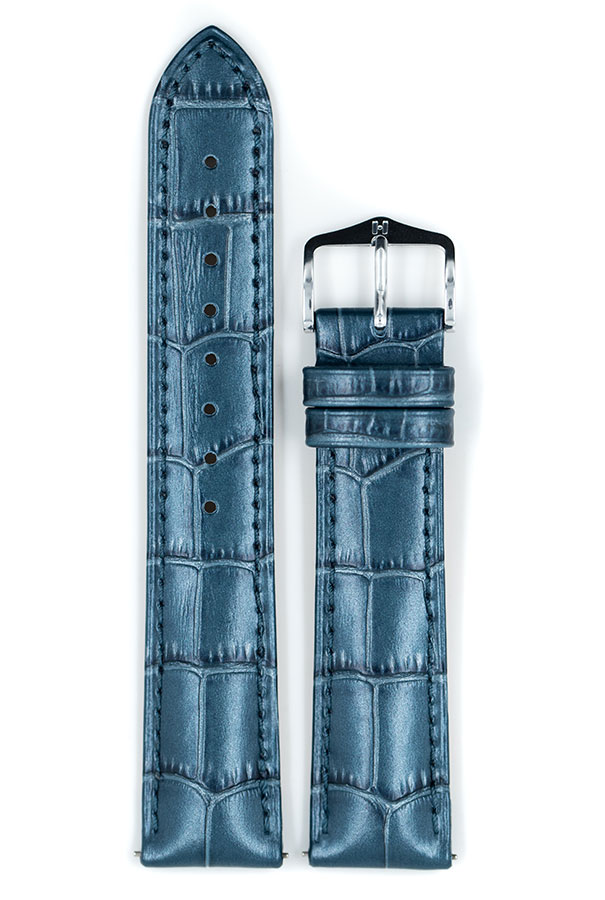 Limitovaná edice kovového dámského řemínku k hodinkám Hirsch Duke . Nejjemnější italská teletina v modré barvě s přirozeně vypadající embosováním aligátora. Polomatný povrch s charakteristickým dvoubarevným odstínem. Kovové provedení je ideální pro dámské lesklé nebo zlaté hodinky. Vodě a potu odolná podšívka Hirsch Softglove zajišťuje nejvyšší komfort nošení i při vyšší zátěži. Tento řemínek k hodinkám je vybaven teleskopy Hirsch Quick-Release , které umožňují nasazení bez použití nářadí.