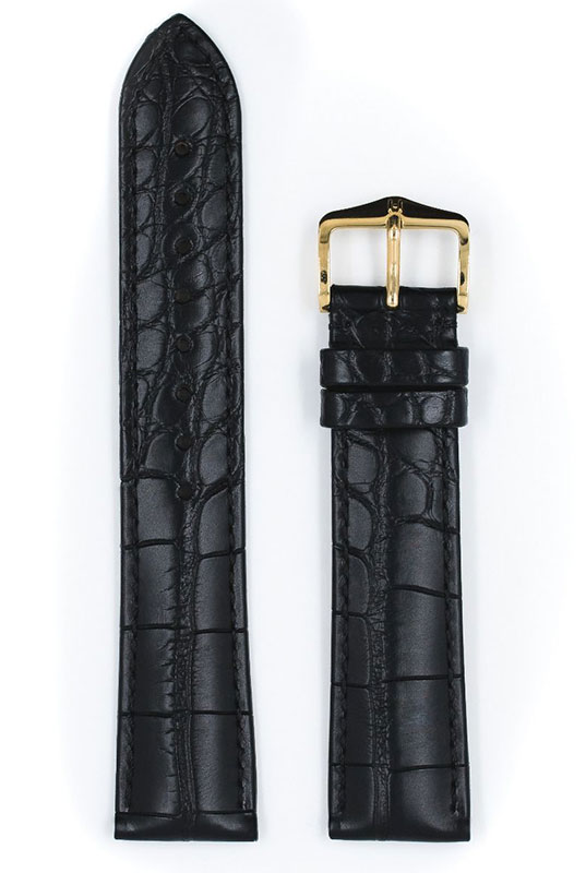 Řemínek Hirsch Genuine Alligator černý 18 L - 120/80