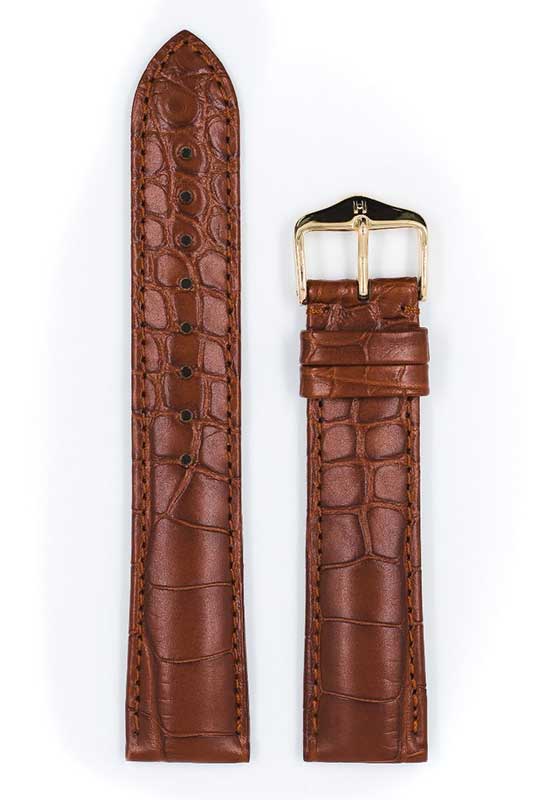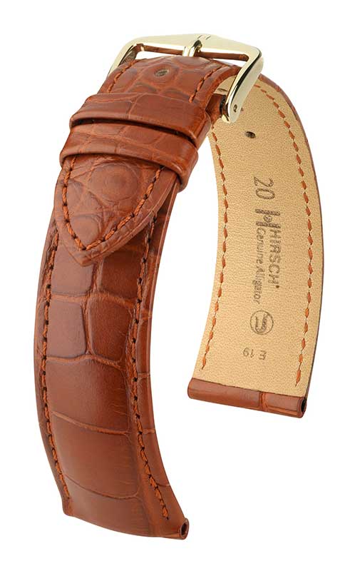 Řemínek Hirsch Genuine Alligator zlatohnědý 18 M - 110/70