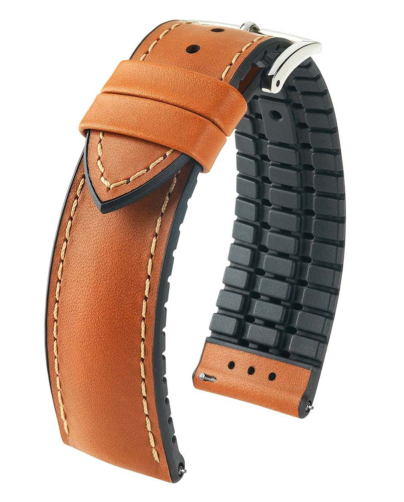 Hirsch James ve zlatohnědé je ve třídě sám. Autentický, tradiční a extrémně odolný řemínek k hodinkám. Tradice a inovace nemusí být v rozporu. Pod nádherně měkkým svrškem kůže s decentním elegantním designem se skrývá nejmodernější technologie, která se dnes při výrobě opasků používá. Flexibilní, voděodolná guma pro neuvěřitelné pohodlí při nošení. Navíc díky speciálně navrženému dnu ruka dýchá a nepotí se. Speciální teleskopy umožňují připevnění popruhu bez použití nářadí. James je perfektní řemínek na plavání, který lze použít nejen na sportovní hodinky, ale i na klasické.