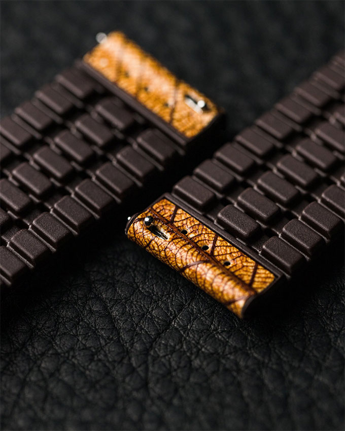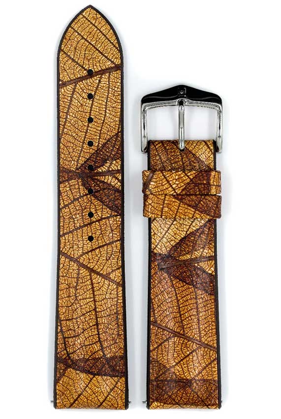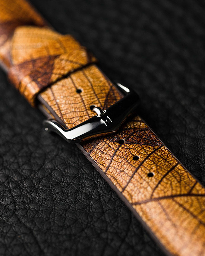 Inovativní řada „LEAF“ z kolekce Nature je vyrobena z listů unikátním vícevrstvým procesem speciálně vyvinutým společností HIRSCH. Jsou jednotlivě barveny a ručně nanášeny speciální technologií na pryžový podklad. Listy se navzájem různě překrývají - díky tomu je každý náramek jedinečný a jedinečný. Díky jádru Performance je náramek nejen bez zvířat a zvláště designově atraktivní, ale také extrémně robustní, díky čemuž je ideální pro všechny vodní sporty. Modely Leaf se hodí ke klasickým sportovním hodinkám i chytrým hodinkám. Made in Austria : Speciální, udržitelná vícevrstvá technologie byla vyvinuta oddělením výzkumu a vývoje v Klagenfurtu Rakousko.