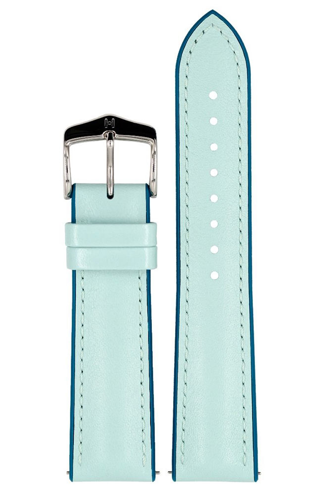 Řemínek k hodinkám Hirsch Lindsey – kde se sport setkává s módou . Lindsey je ženským ztělesněním kolekce vysoce odolných a neuvěřitelně pohodlných pásků z řady Hirsch Performance . Ať už při sportu nebo v každodenním životě: sportovní a funkční kombinace kůže a pryže Hirsch Premium zaručuje vynikající vlastnosti při nošení. Vnější kožená část je ledově modrá a spodní je vyrobena z nejkvalitnější gumy v modrém odstínu. Hirsch Lindsey byl vybaven teleskopy, které umožňují připevnění k pouzdru hodinek bez použití nářadí.