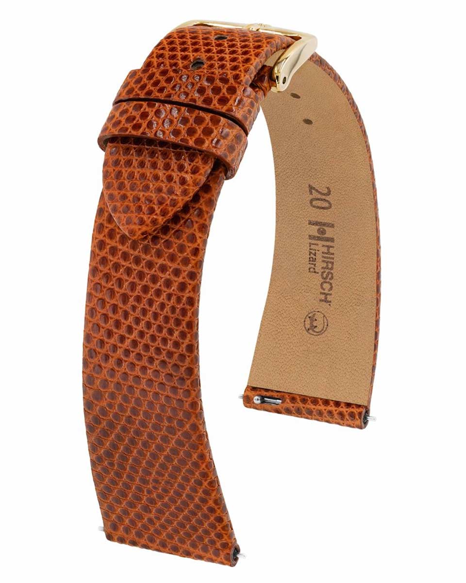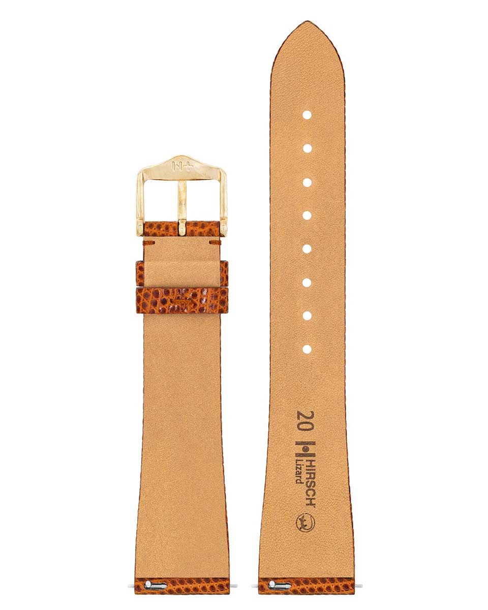 Exkluzivní kožený řemínek k hodinkám – ještěří kůže Hirsch Lizard (CITES) – zlatohnědá