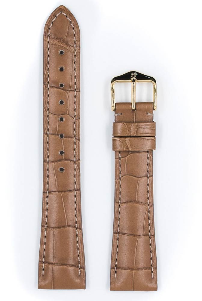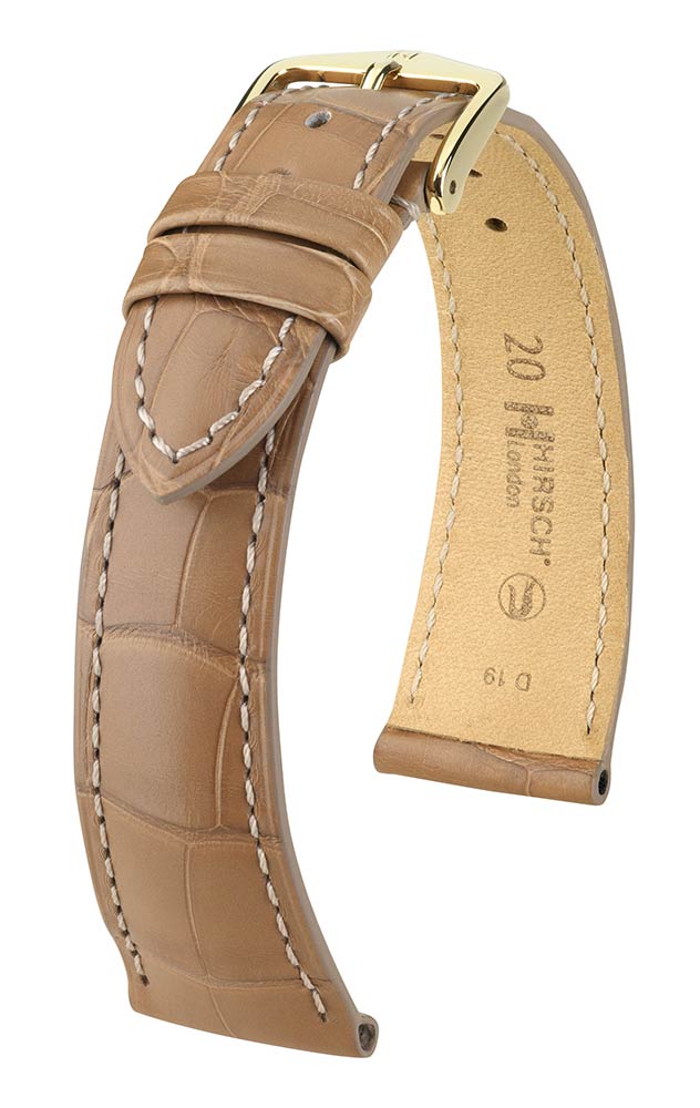 Exkluzivní a luxusní řemínek k hodinkám Hirsch London vyrobený z matně béžové kůže Louisiana aligátora. Charakteristickým znakem tohoto ušlechtilého řemínku je jeho nadčasový design, díky kterému bude jedinečnou ozdobou klasických hodinek. Ručně vybraná, hluboce barvená kůže, ručně kartáčovaná s hedvábným povrchem. Hirsch London je k dispozici v několika verzích nejen v barvách, ale také s použitím různých druhů exotických kůží. Široký výběr velikostí: 14 mm, 16 mm, 17 mm, 18 mm, 19 mm, 20 mm, 21 mm a 22 mm. Všechny řemínky v kolekci London jsou vybaveny dalekohledy Hirsch Quick-Release , namontovanými v řemínku, což umožňuje jeho připevnění k hodinkám bez použití nářadí.