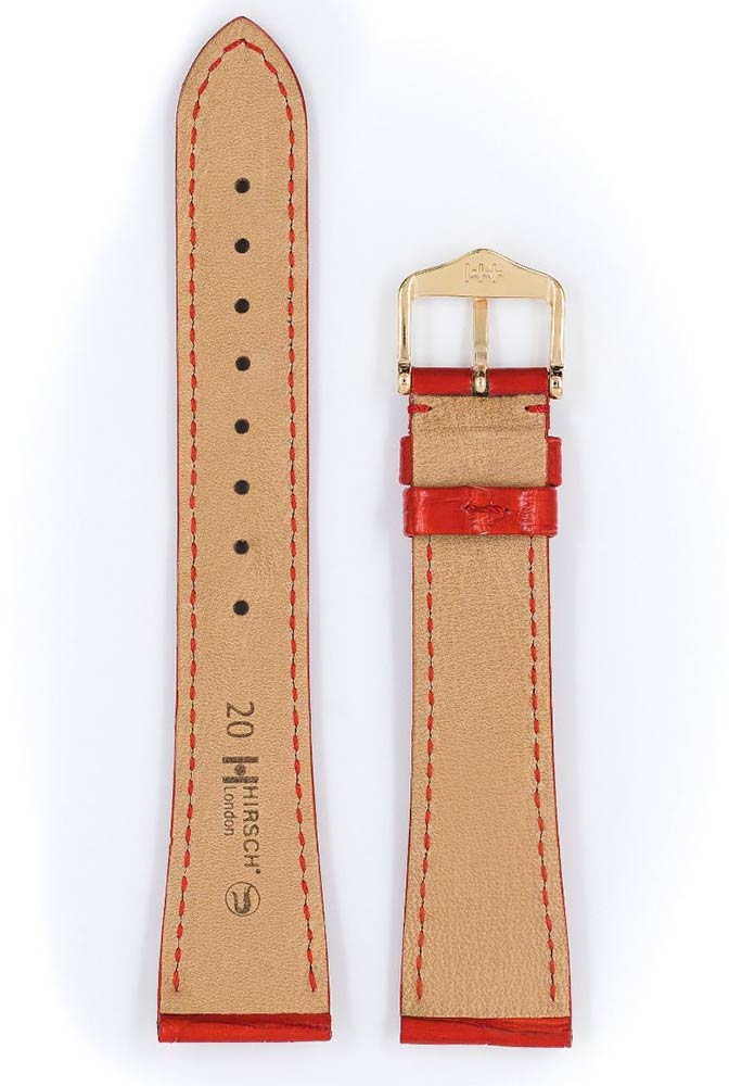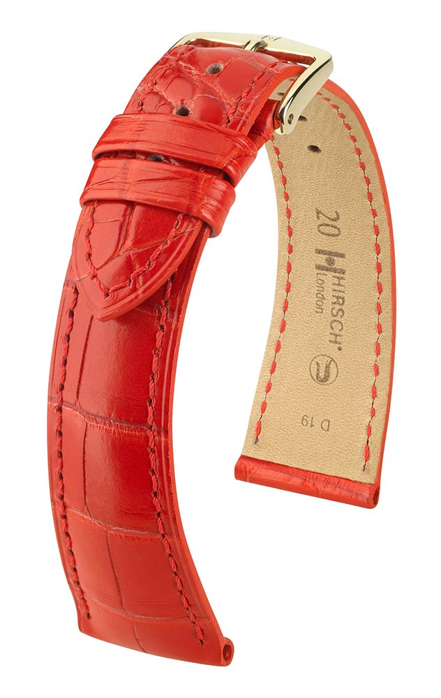 Exkluzivní a luxusní řemínek k hodinkám Hirsch London vyrobený z matně červené louisianské aligátoří kůže. Charakteristickým znakem tohoto ušlechtilého řemínku je jeho nadčasový design, díky kterému bude jedinečnou ozdobou klasických hodinek. Ručně vybraná, hluboce barvená kůže, ručně kartáčovaná s hedvábným povrchem. Hirsch London je k dispozici v několika verzích nejen v barvách, ale také s použitím různých druhů exotických kůží. Široký výběr velikostí: 14 mm, 16 mm, 17 mm, 18 mm, 19 mm, 20 mm, 21 mm a 22 mm. Všechny řemínky v kolekci London jsou vybaveny dalekohledy Hirsch Quick-Release , namontovanými v řemínku, což umožňuje jeho připevnění k hodinkám bez použití nářadí.