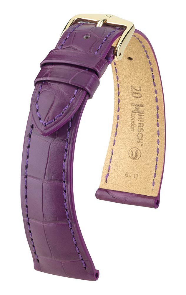 Exkluzivní a luxusní řemínek k hodinkám Hirsch London vyrobený z matně fialové kůže Louisiana aligátora. Charakteristickým znakem tohoto ušlechtilého řemínku je jeho nadčasový design, díky kterému bude jedinečnou ozdobou klasických hodinek. Ručně vybraná, hluboce barvená kůže, ručně kartáčovaná s hedvábným povrchem. Hirsch London je k dispozici v několika verzích nejen v barvách, ale také s použitím různých druhů exotických kůží. Široký výběr velikostí: 14 mm, 16 mm, 17 mm, 18 mm, 19 mm, 20 mm, 21 mm a 22 mm. Všechny řemínky v kolekci London jsou vybaveny dalekohledy Hirsch Quick-Release , namontovanými v řemínku, což umožňuje jeho připevnění k hodinkám bez použití nářadí.