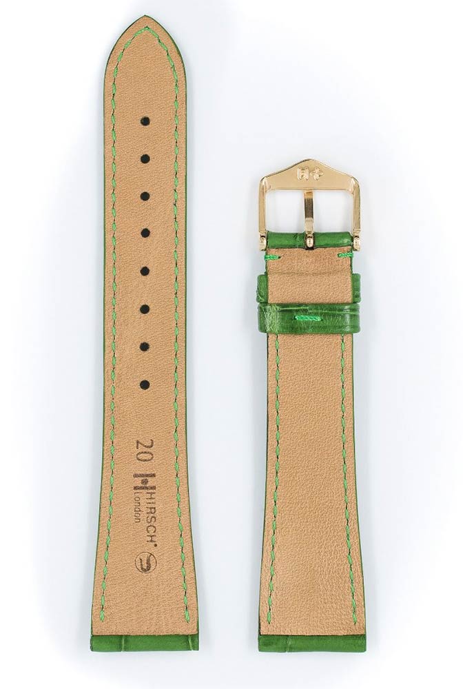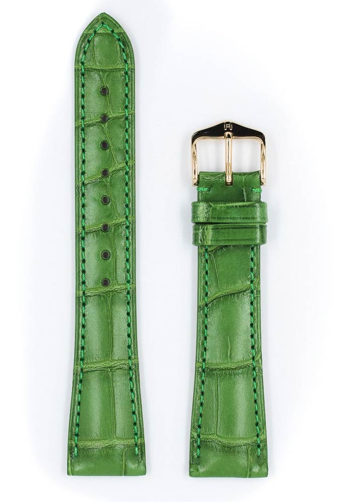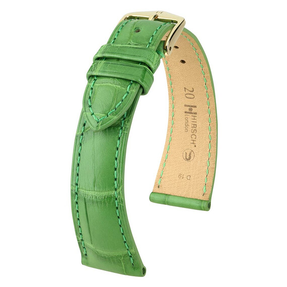 Exkluzivní a luxusní řemínek k hodinkám Hirsch London vyrobený z matně zelené louisianské aligátoří kůže. Charakteristickým znakem tohoto ušlechtilého řemínku je jeho nadčasový design, díky kterému bude jedinečnou ozdobou klasických hodinek. Ručně vybraná, hluboce barvená kůže, ručně kartáčovaná s hedvábným povrchem. Hirsch London je k dispozici v několika verzích nejen v barvách, ale také s použitím různých druhů exotických kůží. Široký výběr velikostí: 14 mm, 16 mm, 17 mm, 18 mm, 19 mm, 20 mm, 21 mm a 22 mm. Všechny řemínky v kolekci London jsou vybaveny dalekohledy Hirsch Quick-Release , namontovanými v řemínku, což umožňuje jeho připevnění k hodinkám bez použití nářadí.