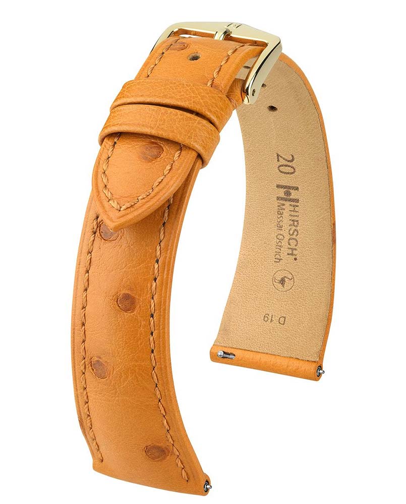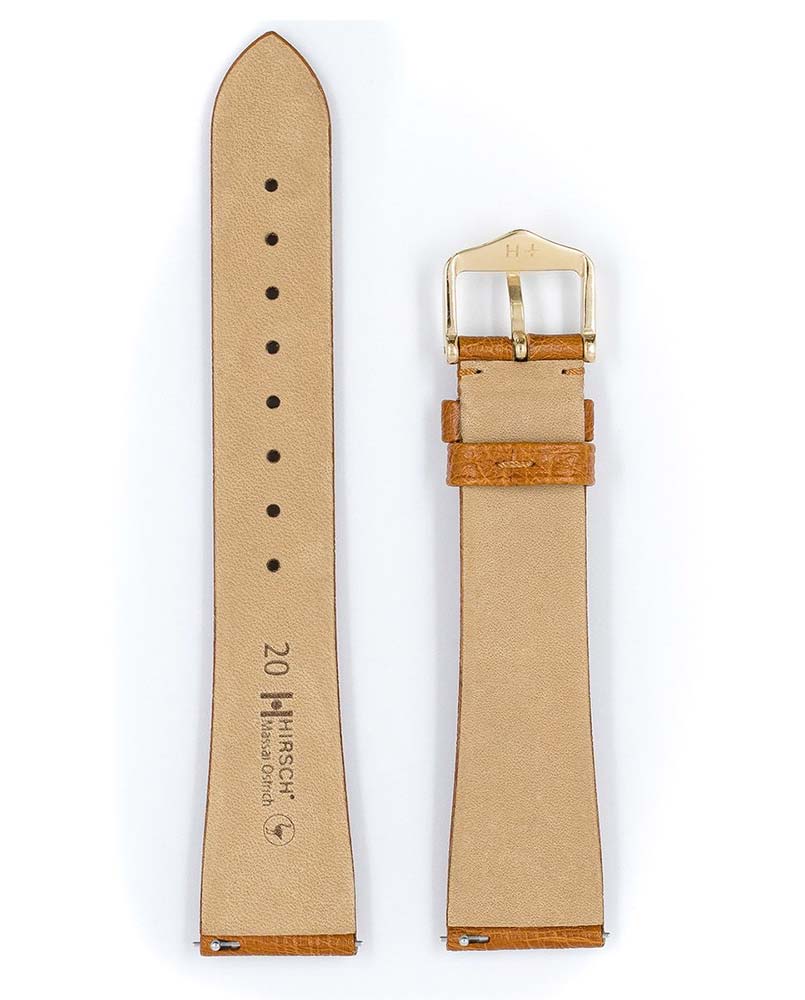 Klasický a nadčasový řemínek k hodinkám Hirsch Massai Ostrich s výrazným charakterem. Sametově měkká, hluboce soudkovitá kůže z afrického pštrosa s výrazným kulatým a kontrastním embosováním. Hirsch Massai Pštros v medové barvě je skutečnou raritou, která se skvěle hodí ke zlatým a luxusním hodinkám. V pásu Hirsch použil speciální teleskopy, které umožňují řemínek nasadit a sundat bez použití nářadí. Massai Ostrich je k dispozici ve velikostech 14 mm, 16 mm, 17 mm, 18 mm, 19 mm, 20 mm, 21 mm a 22 mm.
