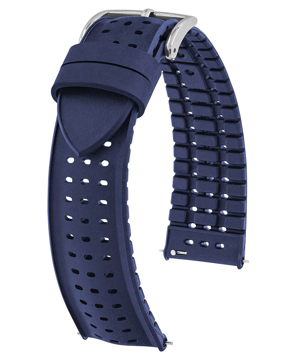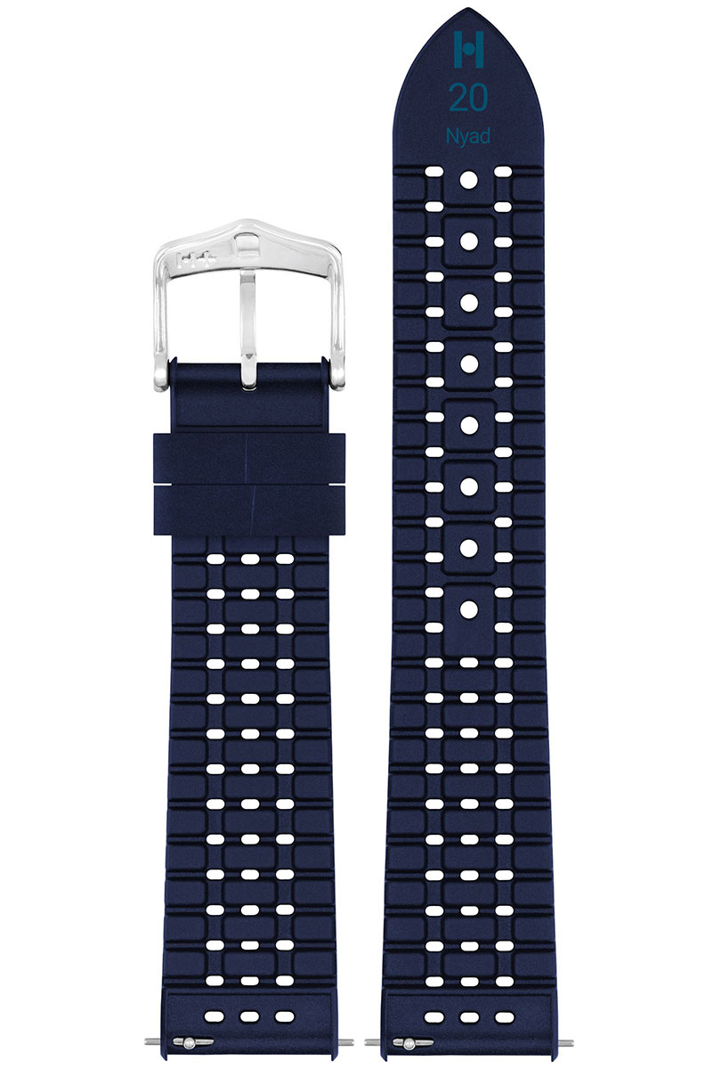 Speciální limitovaná edice řemínku k hodinkám, k dispozici pouze několik kusů, z kolekce Hirsch Performance. Nyad je vyroben z vysoce kvalitní gumy a skvěle se hodí ke sportovním i luxusním hodinkám. Speciální vzor s názvem Tropic se vyznačuje perforovaným povrchem, který zajišťuje ventilaci a zabraňuje pocení ruky v horkých dnech. Po opuštění vody je přebytečná voda rychle odvedena pryč, což zajišťuje i speciálně upravené dno popruhu. Hirsch Nyad je extrémně odolný a zcela voděodolný. Quick-Release systém umožňuje montáž bez nářadí. Stačí pohnout teleskopickým prvkem vyčnívajícím ze spodní části, aby se pásek zasunul do pouzdra.