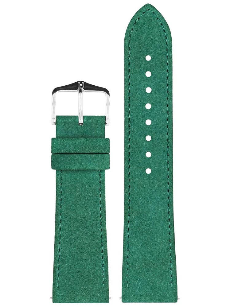 Řemínek k hodinkám Osiris Nubuk v zelené barvě s decentním vzorem tradiční nubukové kůže. Sametový materiál zaujme svou jemností a potěšením z nošení. Černá, tradiční barva, je vhodná pro každodenní i elegantní outfity. Řemínek se hodí zejména ke klasickým hodinkám s pouzdrem z růžového zlata. Nadčasový design Osiris Nubuck působí elegantně a je vhodný pro ženy i muže. Řemínek využívá speciální teleskopy, které umožňují jeho montáž a demontáž bez použití nářadí.
